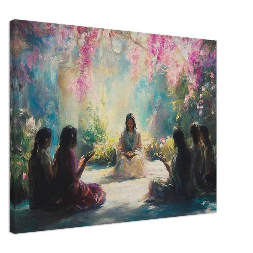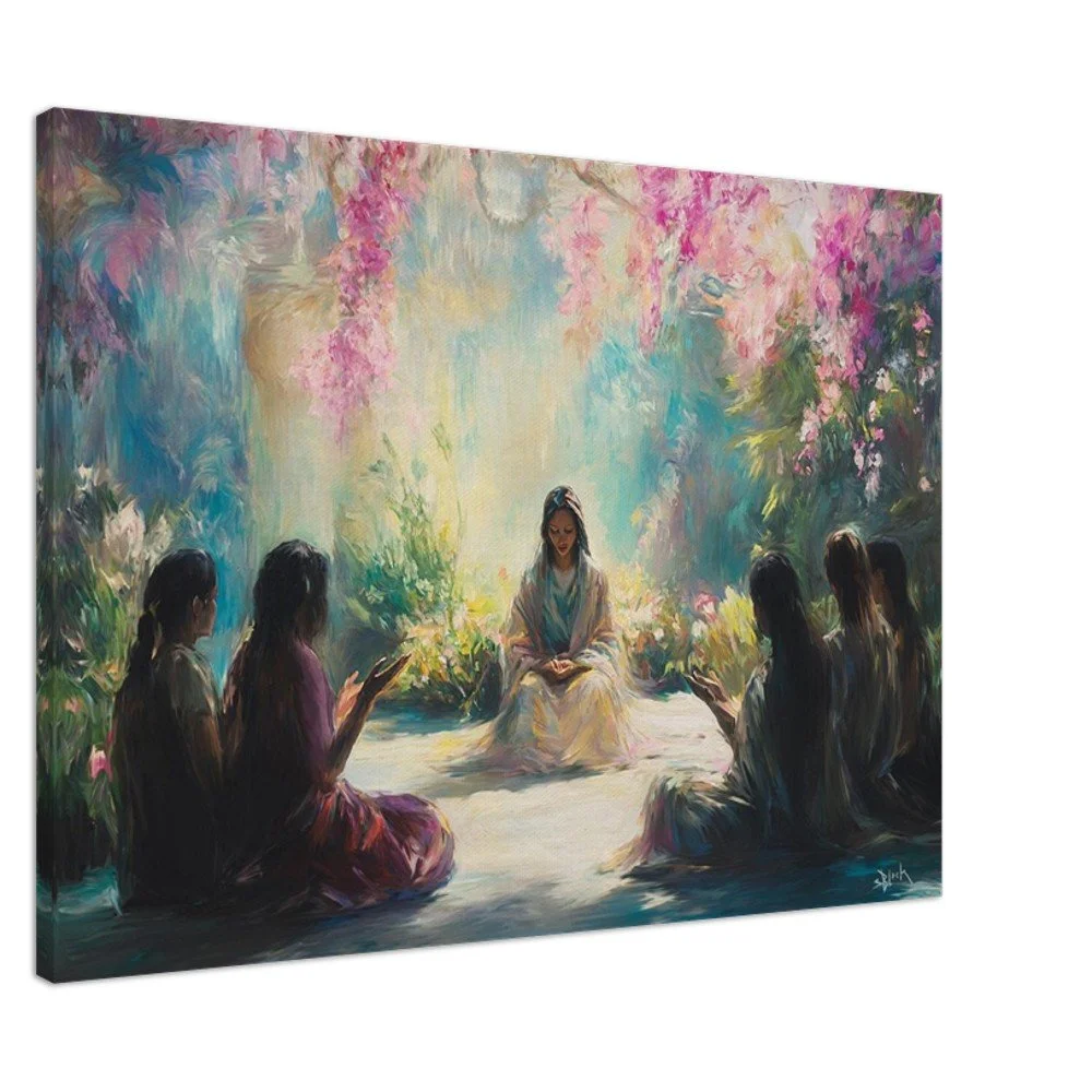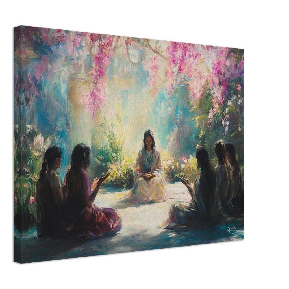 Transform your space with our stunning canvas print featuring the inspiring verse, 'You who sit in the gardens, companions listen to your voice' from Songs 8:3. Crafted with enhanced texture, this art piece offers a timeless beauty that elevates any room. Made with responsibly sourced FSC-certified wood stretcher bars and a durable cotton-polyester blend, our canvas is designed to impress Order today and add a touch of inspiration to your decor!